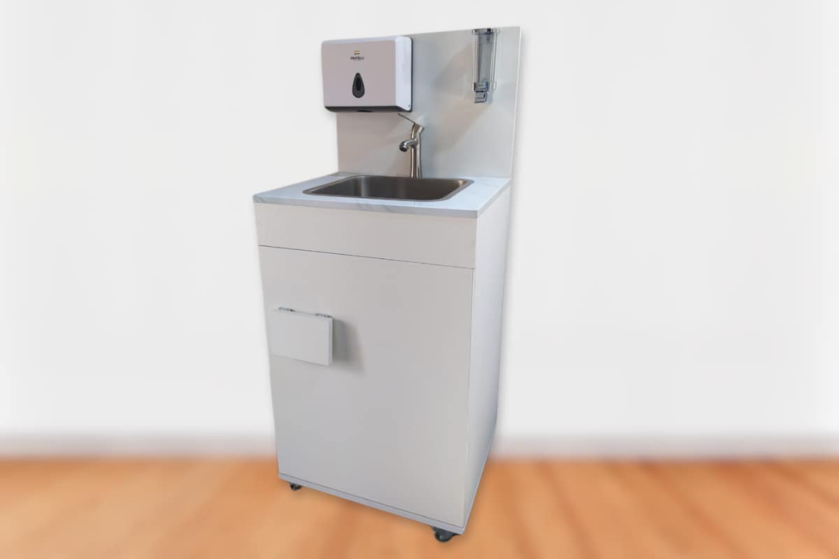 El lavamanos portátil electrónico: Perfecto para interiores como oficinas y lactarios, ofrece higiene sin esfuerzo con activación electrónica.